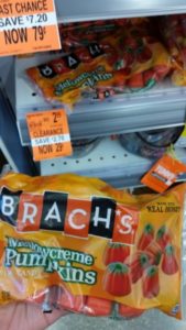 The candy corn was marked down to 89¢ and the pumpkins were marked down to 29¢!