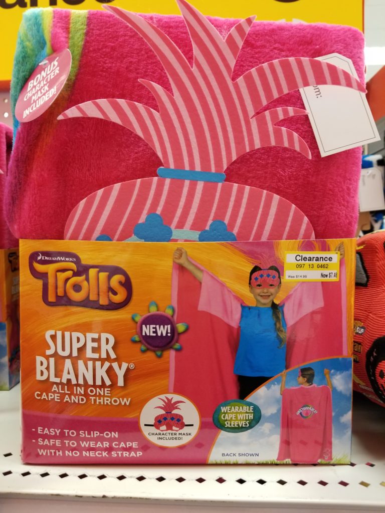 More fabulous Target clearance deals.  Check out these Super Blanky deals marked down to $4.48-$7.48, all originally $14.99!  They all come with BONUS character masks!