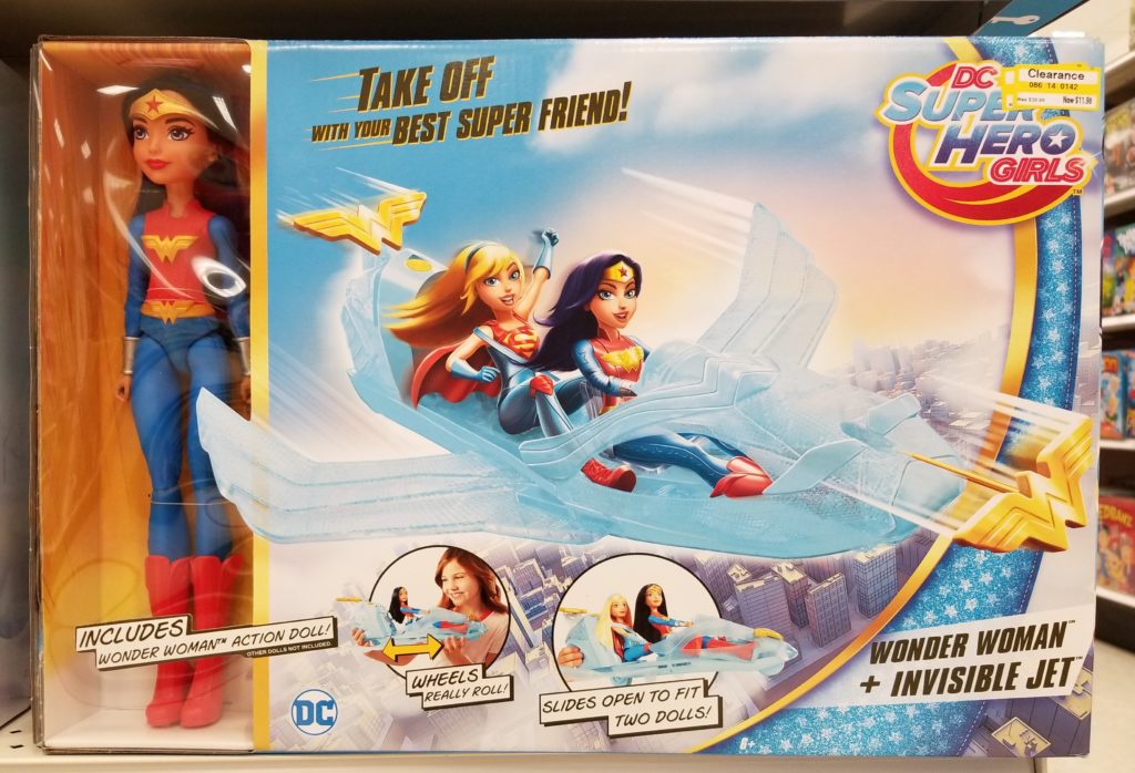 Wonder Woman Action Doll and Invisible Jet on clearance for only $11.98, originally $39.99!  What little girl wouldn’t love this??