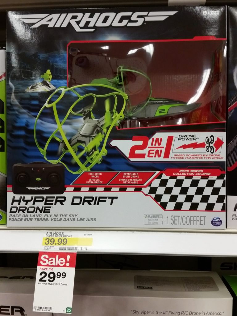 This Air Hogs 2-in-1 Hyper Drift Drone for Kids is on sale for $29.99 in stores, originally $39.99. This drone has a self-righting cage and is capable of high speed racing and flying! The online sale price is $35.99. You could opt for an in store purchase or have the price adjusted at customer service!