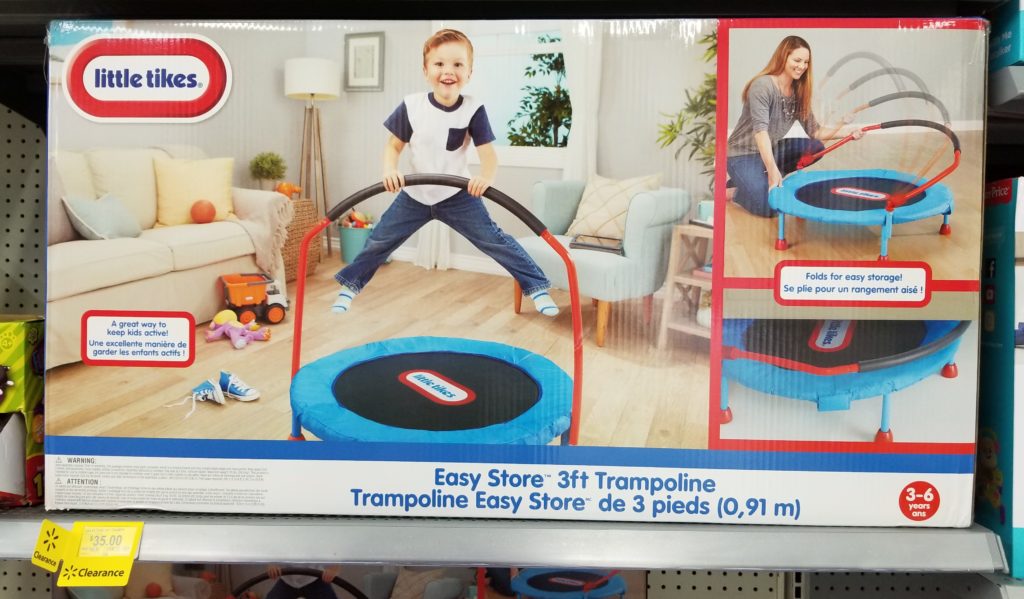 Head over to your local Walmart, where you may be able to score this Little Tikes – Easy Store 3′ Trampoline for only $35.00, originally $46.96!