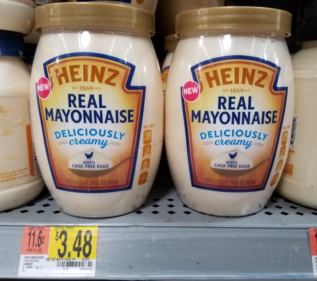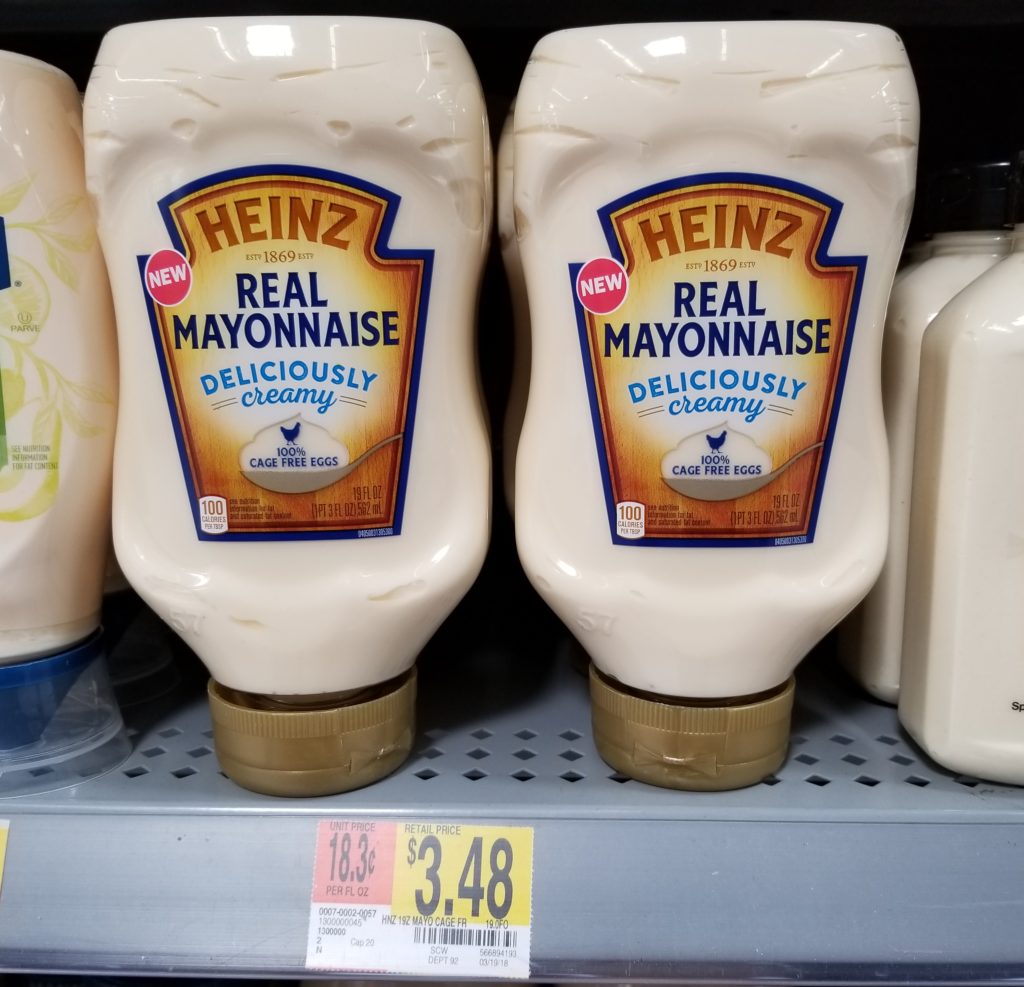 Purchase the Heinz Real Mayonnaise (30 oz jar OR 19 oz squeeze bottle) for $3.48. If you ever have clipped or printed coupons, go ahead and use them at this point. Make sure you have your receipt!!!