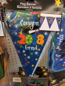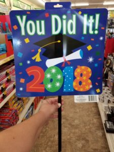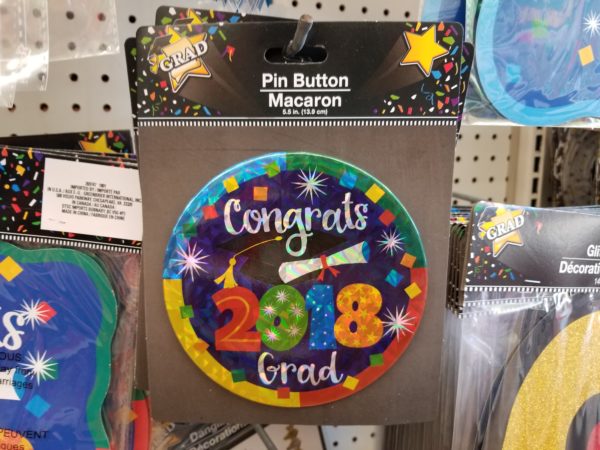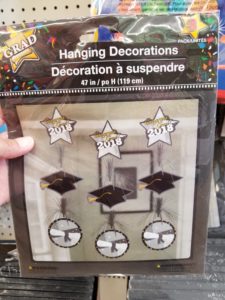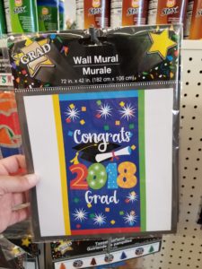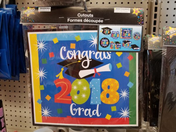 There was actually a whole aisle dedicated to graduation decorations and gifts. Go and check it out before it is all picked over. If you order online, you’ll have to purchase by the case. Perfect if you’re having a large party for your graduate!
