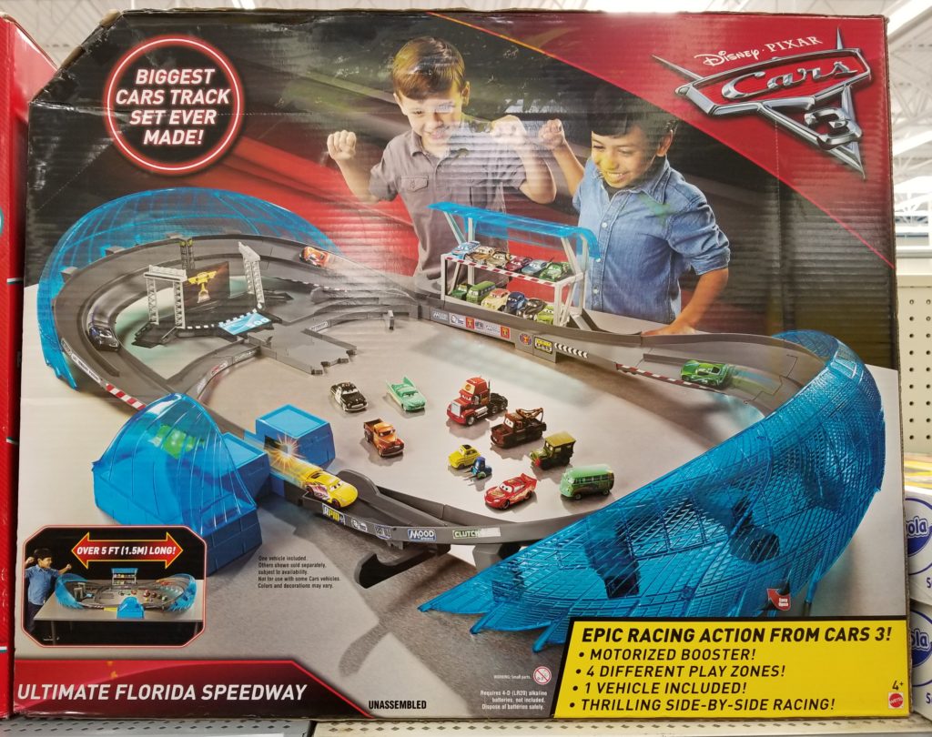 Hurry over to your local Walmart where you may be able to score this Disney/Pixar Cars 3 Ultimate Florida Speedway Track Set