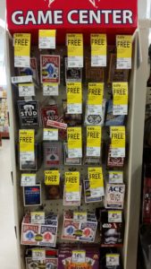 While your there, be sure to look for these playing card deals on or near an end cap.  They are Buy One Get One FREE through November 4th.  Prices vary from $3.99-$9.99 per pack!