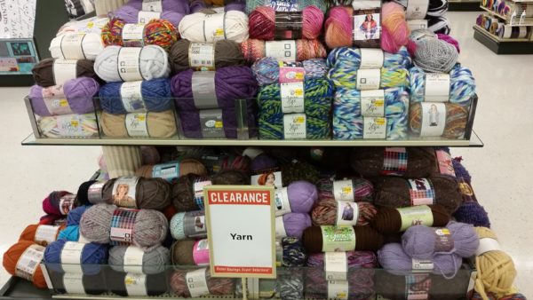 Hobby Lobby has tons of yarn on clearance!  I found several bins at our location.