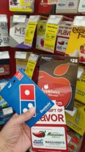 I love when these gift card deals come around. If you eat out, why not buy discounted gift cards? At CVS this week, they have an awesome deal on a few restaurant gift cards: Applebee’s, Chili’s, and Domino’s Pizza to be exact!