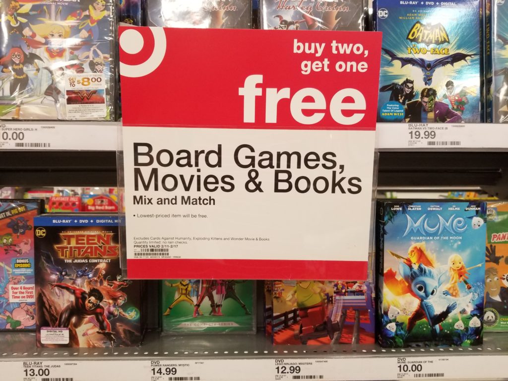 Even better…Most books are buy 2 get 1 Free! (Buy 2 get 1 Free includes books, board games and movies – Mix and Match – the lesser priced item is FREE.) This deal is also happening in stores and online!