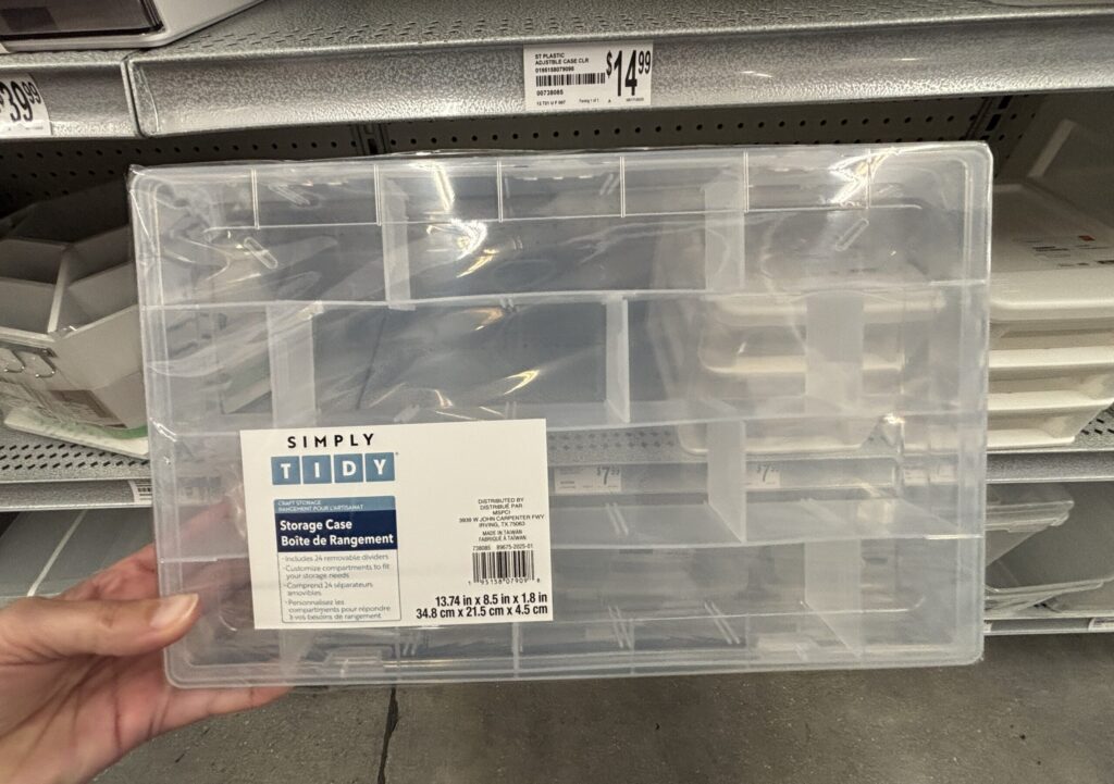 Simply Tidy Clear Adjustable Plastic Storage Case $8.99, normally $14.99. This storage case is clear and has 24 removable dividers.
