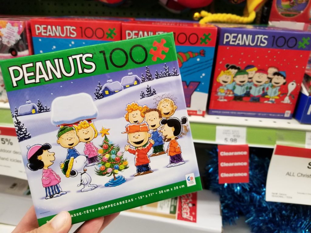 These Peanuts 100 piece puzzles were 75% off making them only 1.49 each.  Save them for next year or do them now on winter break!  Glue them together on a piece of cardboard and make an awesome and fun picture to hang up!