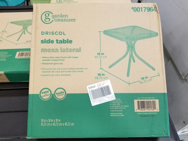 Garden Treasures 18×18 Square End Table only $7.98, in stores and online.  Originally $20.00!  Tempered glass and easy to assemble.