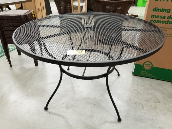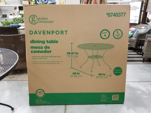 Garden Treasures Davenport Round Steel Dining Table only $44.00, in stores and online.  Originally $118.00.  48″ x 48″  Easy to assemble and has an umbrella hole in the center!