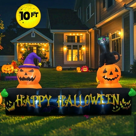 10Ft Long Happy Halloween Inflatable Decoration with LED Lights, Pumpkin and Cat for Yard – $48.99 (SAVE $111.00)