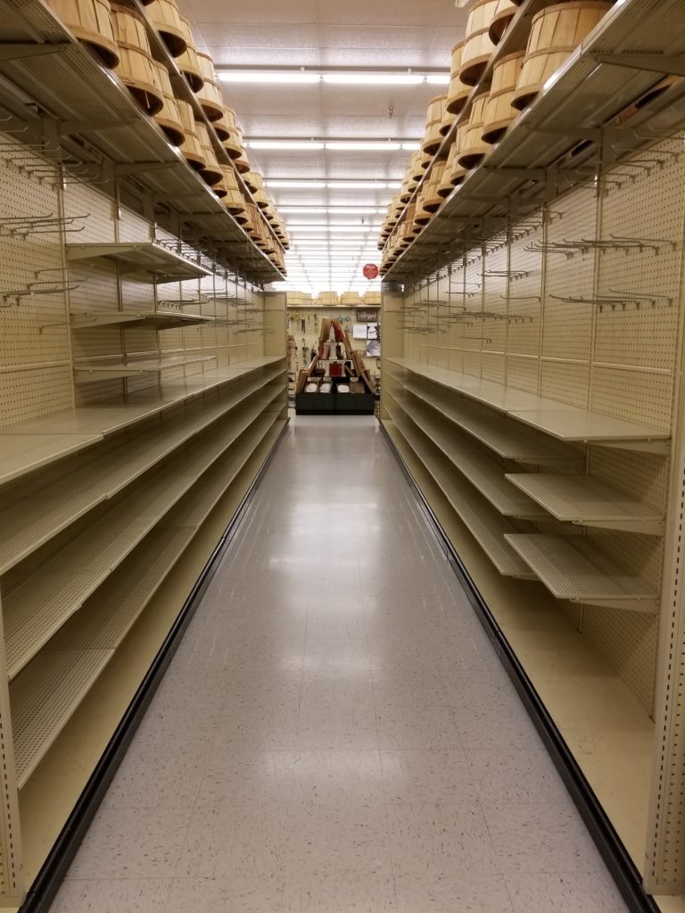 There were a few aisles that looked like this.  On a normal day, this would be disappointing, today however, it was not.  I imagined all the holiday decorations that will soon fill these shelves and I SMILED!  These my friends are exciting times.  LOL!