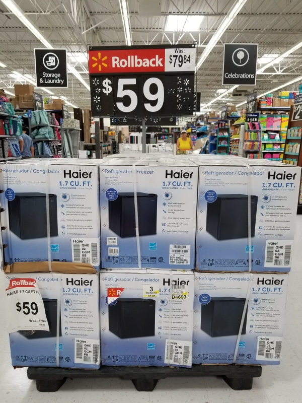 This Haier 2.7 cu ft Compact Refrigerator in black is on Rollback for $79.00, originally $109.00. They are running out online, but there were several available at my local Walmart!