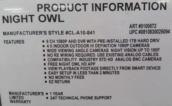 BJ’s has the Night Owl 8-Channel 4-Camera 1080p Smart Security System with 1TB HDD DVR for $199.99 (was $269.99).