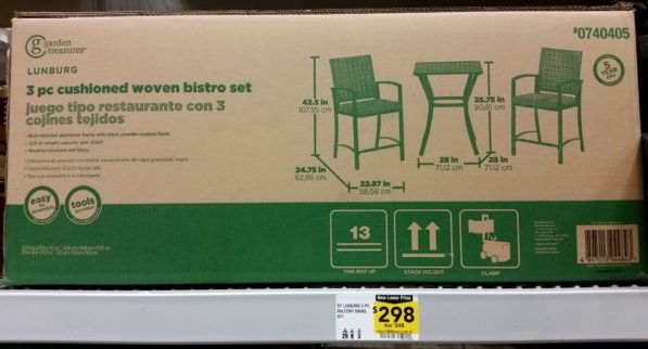 Right now at Lowe’s, they have this Garden Treasures Lunburg 3 piece Cushioned Woven Bistro Set for $298 (originally $348).