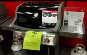 And through December 31, 2017, Lowe’s is offering a coupon for $50 off ANY Weber Spirit gas grill, while supplies last…Here’s a couple of grills I spotted. They will vary by location!