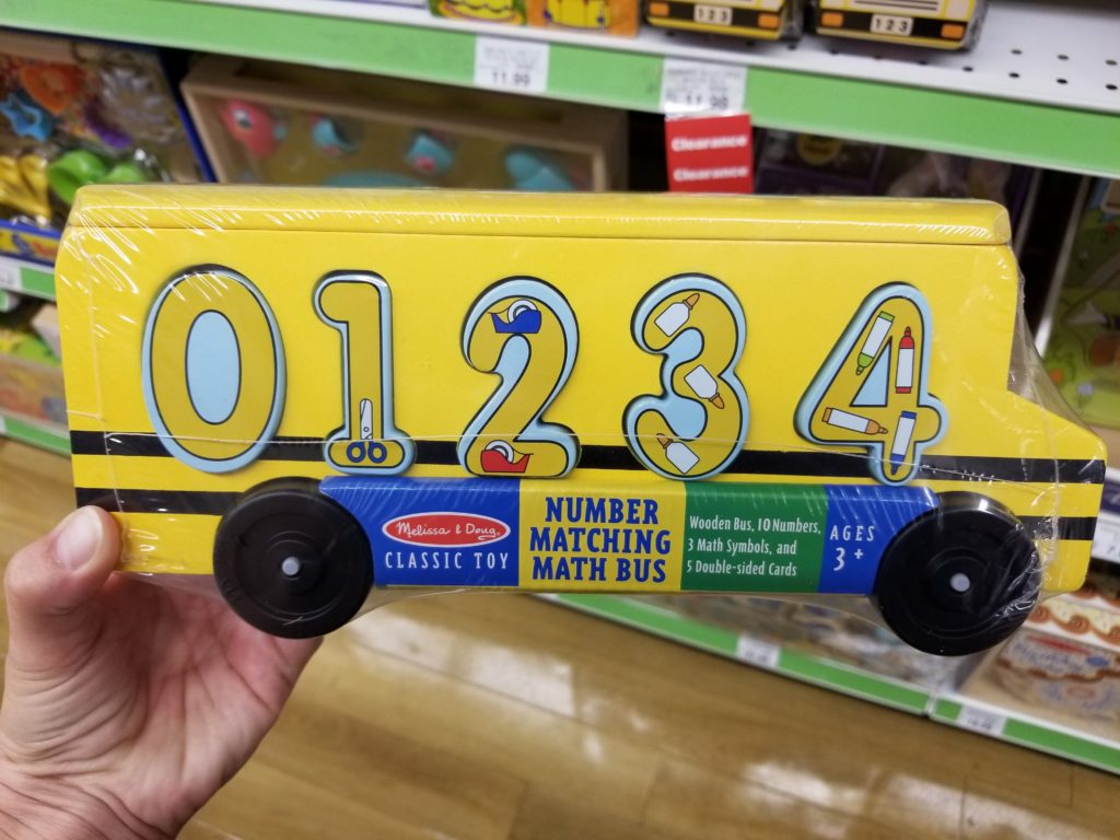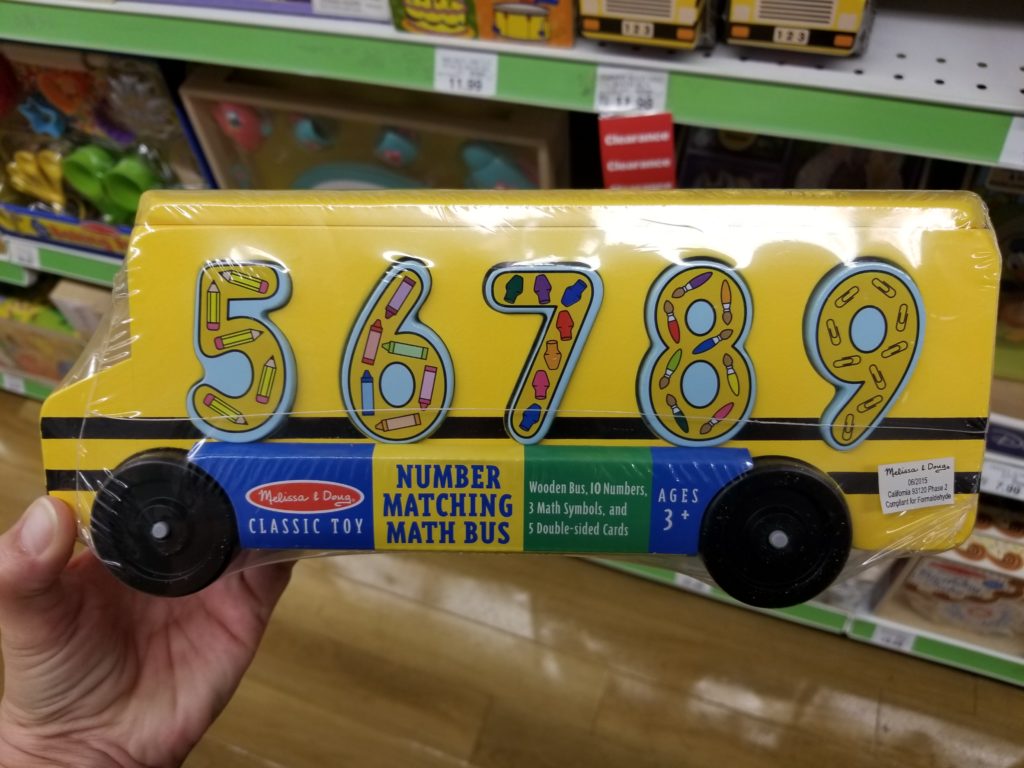 Check out this Melissa and Doug Number Matching Math Bus that is on clearance for only $11.98, originally $19.99. It’s a wooden school bus that comes with 10 numbers, 3 math symbols and 5 double-sided equation cards!