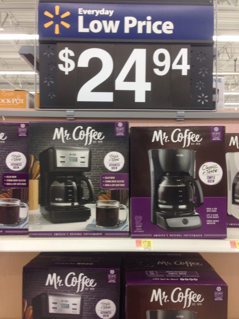 Mr. Coffee 12-cup Switch Coffee Maker (CG13) on Rollback for $17.88, normally $19.88. This machine has auto-pause and is simple and easy to use.