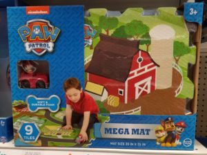This Paw Patrol Mega Mat is on clearance in stores for $9.99, originally $19.99. It comes with 9 tiles made of soft durable foam!