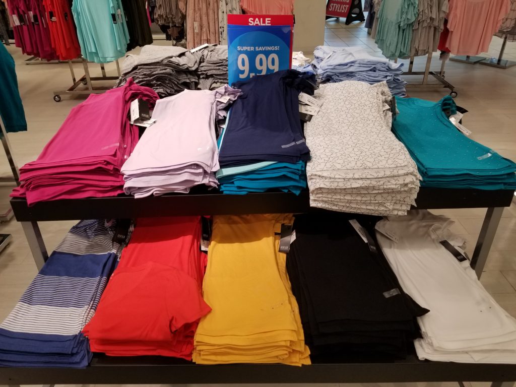 a.n.a. Scoop Neck Tee (regular and plus sizes) are on sale for just $7.00-$9.99, regularly $17-$22. There are so many colors – solids and prints – available. They look great with shorts, pants, leggings or jeans!