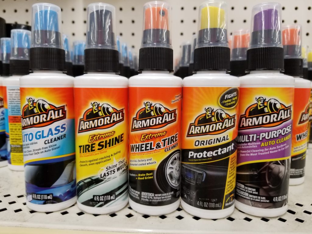 Each 4 oz. bottle of Armor All is just $1.00 each. Choose between: glass cleaner, tire shine, wheel & tire cleaner, protectant and a multi-purpose cleaner! Some stores may also carry the tire foam.