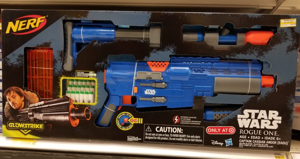 This NERF Star Wars Rogue One Glow Strike is on clearance, in stores and online, for only $39.98, originally $79.99. That’s 50% off. Incredible! This motorized blaster fires glow-in-the-dark darts and features sound effects.