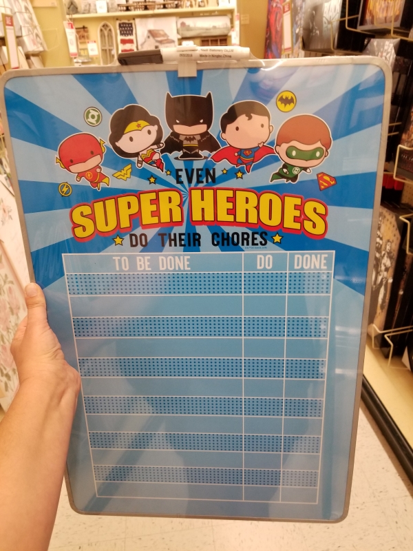 Justice League Chores List Dry Erase Board only $17.99, normally $29.99. Show your bored kids how to be super heroes this summer! 23 3/4″ x 16″ Comes with 1 dry erase marker and holder.