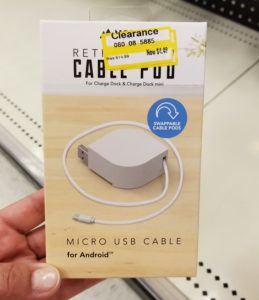 North Retractable Cable Pod 2′ (Android Compatible) is on clearance for $4.48, originally $14.99.