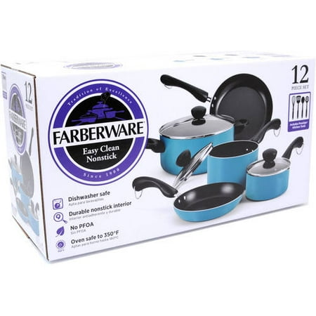 You can grab this Farberware Easy Clean Dishwasher Safe Aluminum Nonstick 12-Piece Cookware Set