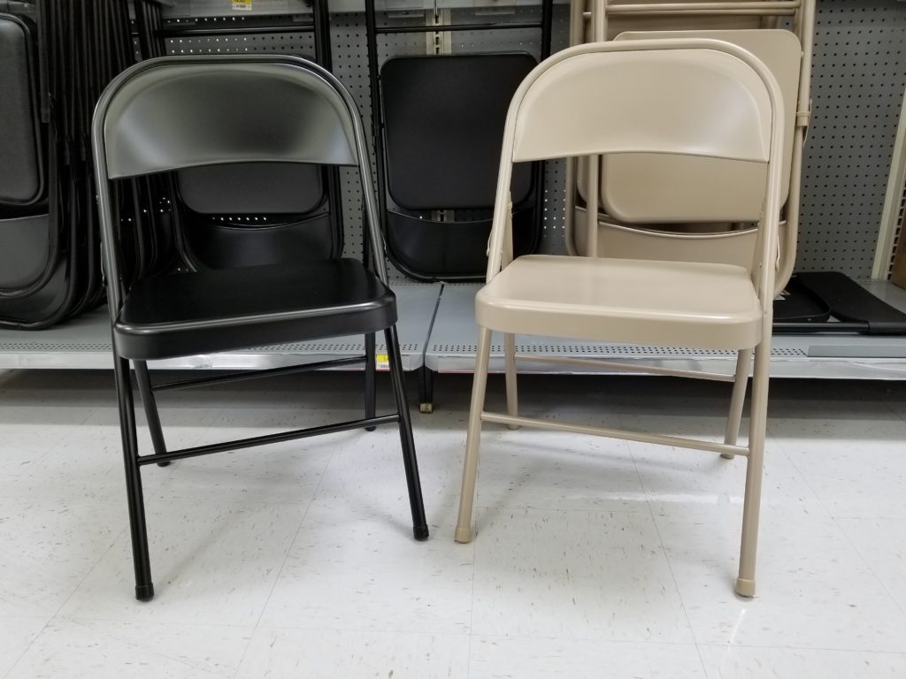 At the store I found these Mainstays Folding Chairs for $9.83 each! That’s a great price for not being on sale! Online, I found a 4 Pack of Mainstays Folding Chairs for only $49.00. FREE in store pick up is available at most stores! They come in Black or Antique Linen.
